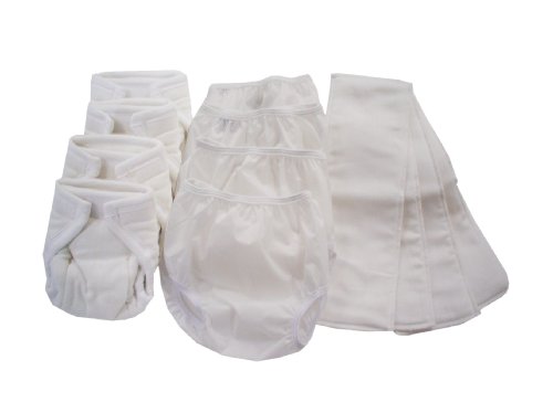 - Includes 4 velcro fit contoured cloth diapers, 4 diaper doublers and 4 waterproof nylon diaper pants